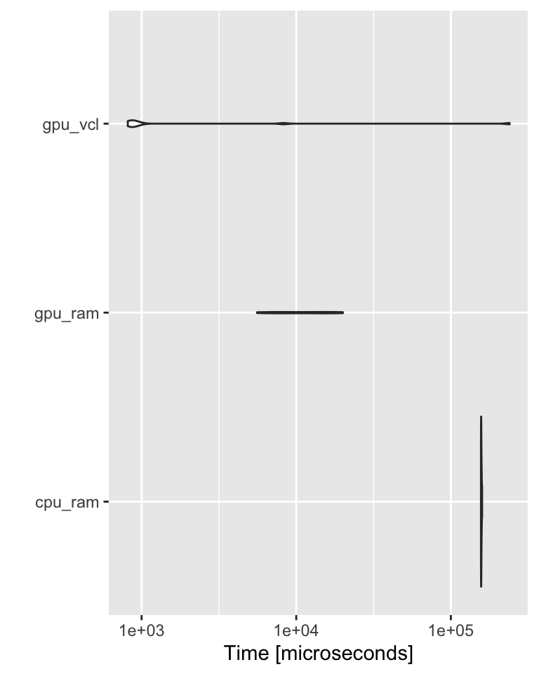 vclA = vclMatrix(A, type = "float") # stored: GPU, computed: GPU