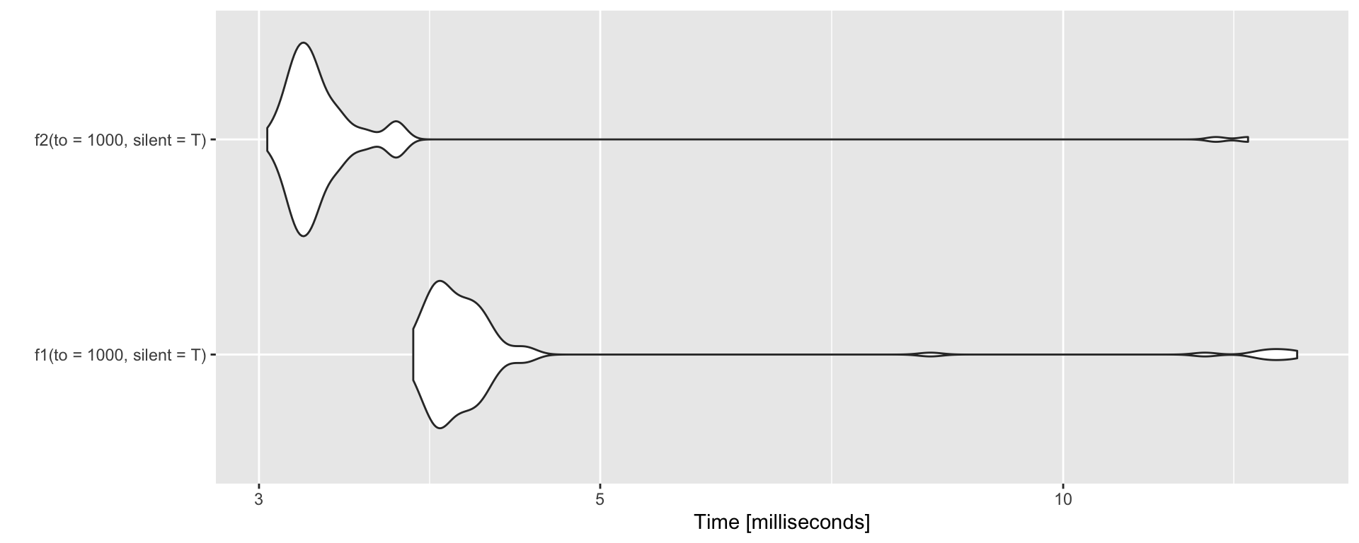profvisYet another nice way to profile your code is by using Hadley Wickham’s profvis package: