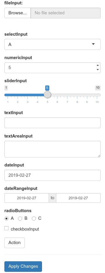 sliderInput("slider-input",label="sliderInput",value=5,min=1,max=10),