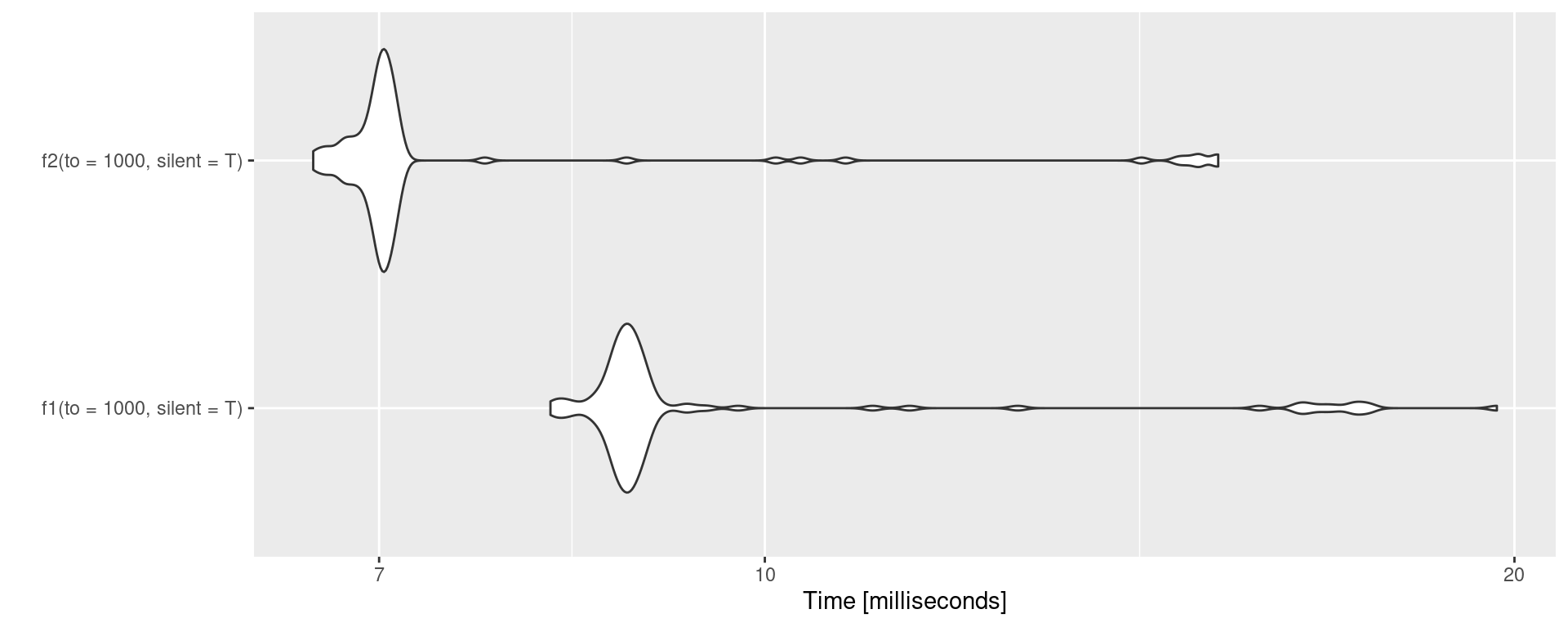 profvisYet another nice way to profile your code is by using Hadley Wickham’s profvis package: