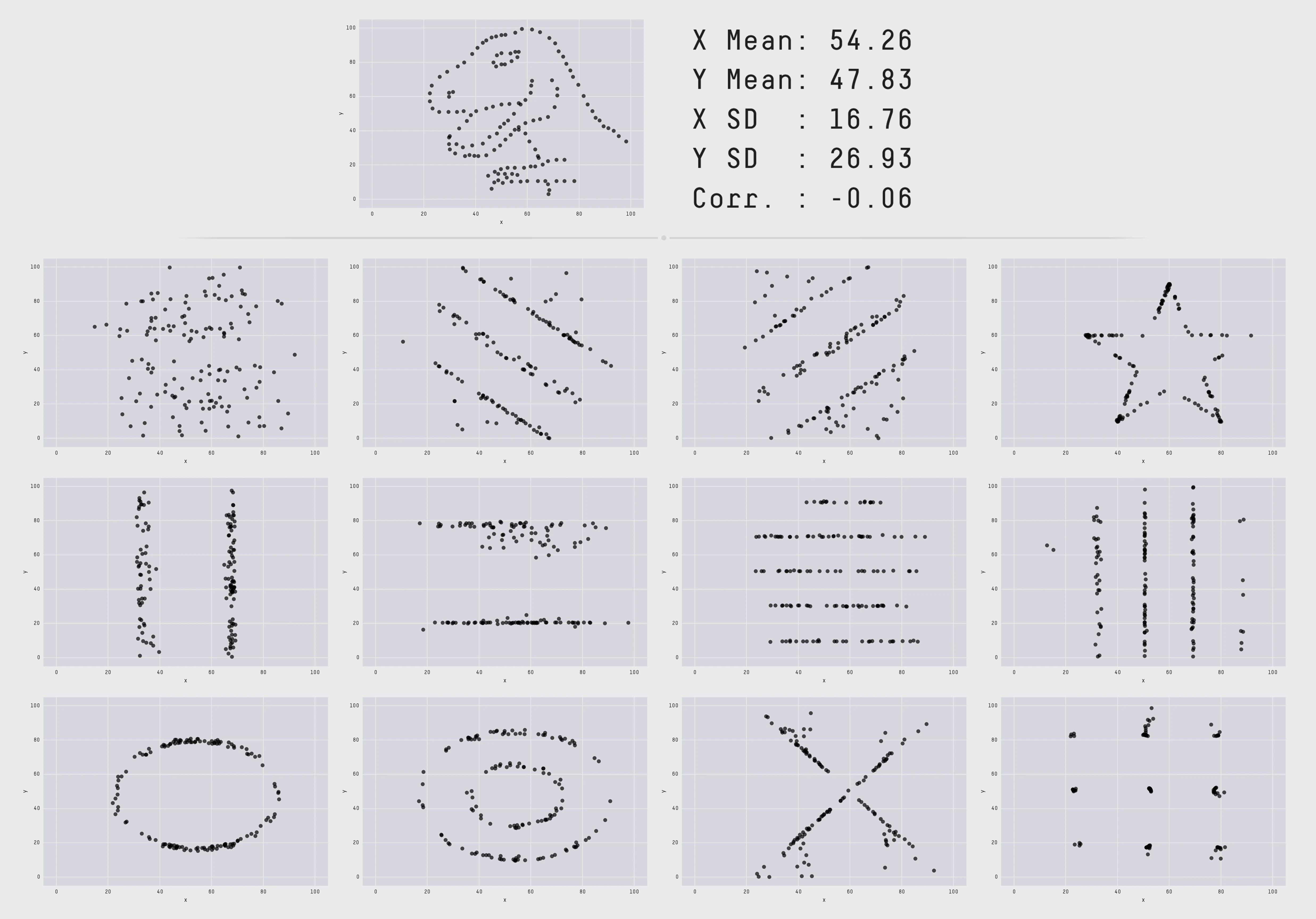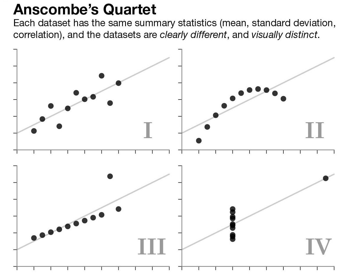 Graphing is an essential part of data analyses. Data with same summary statistics can look very different when plotted out.