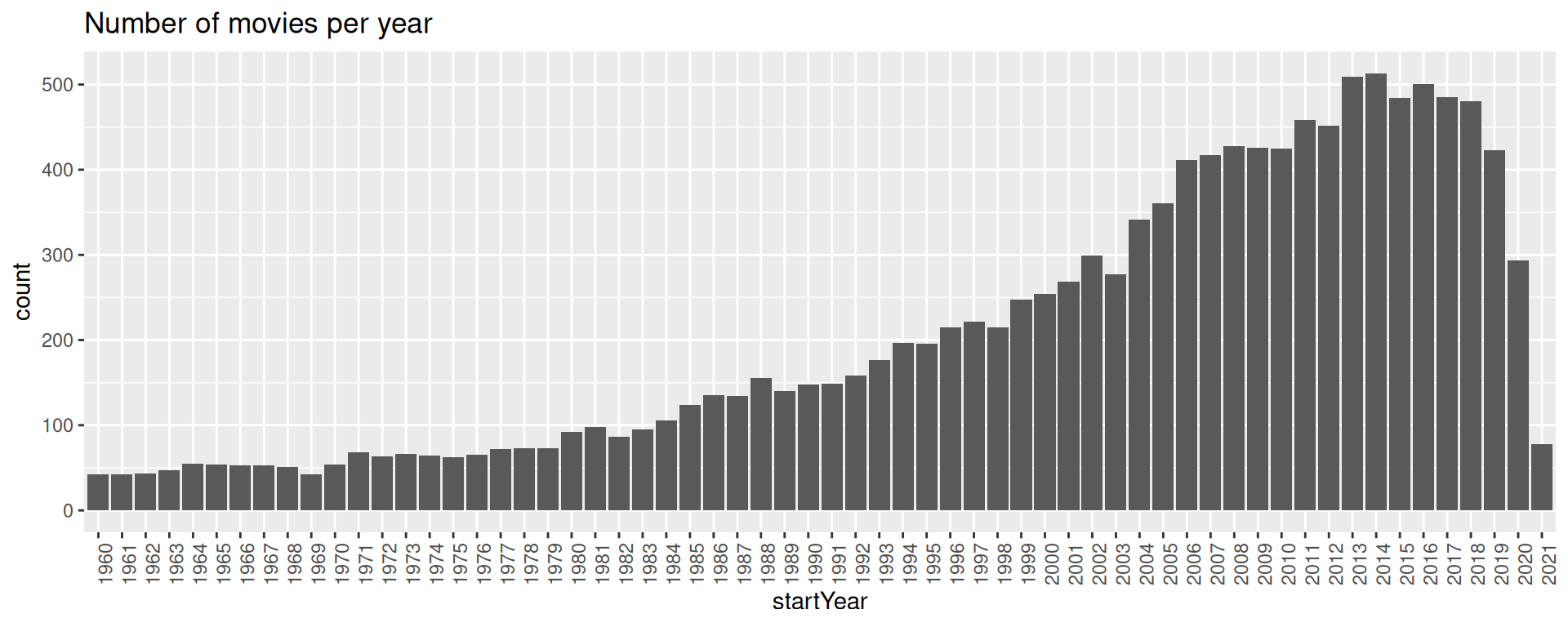 knitr::kable(subset[1:7,],'html')| originalTitle | startYear | runtimeMinutes | genres | averageRating |
