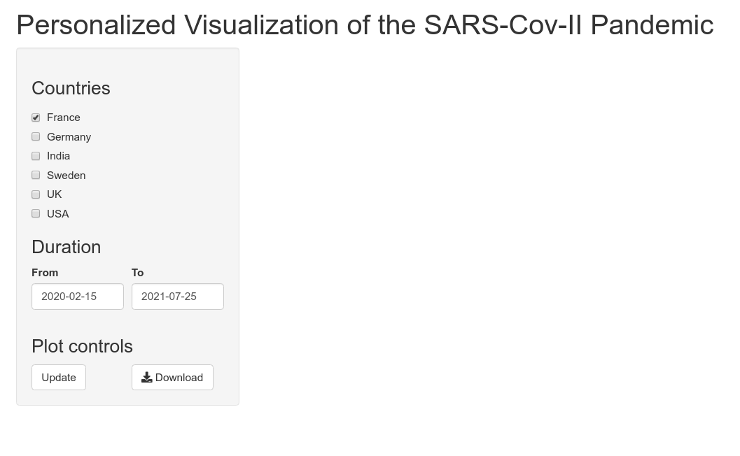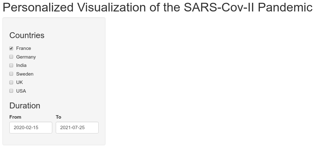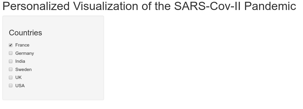 headerPanel(title="Personalized Visualization of the SARS-Cov-II Pandemic",windowTitle="Covid Data"),