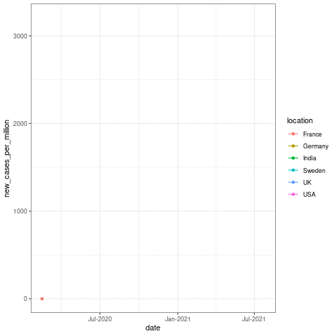 ggplot(aes(x= date, y=new_cases_per_million, group = location, color = location)) +