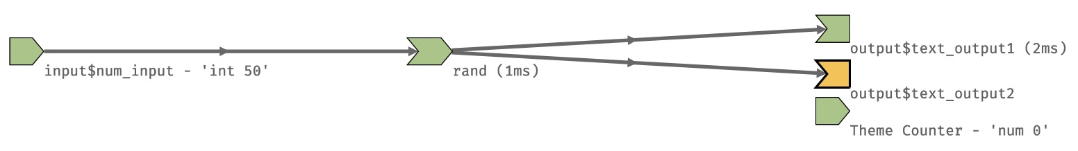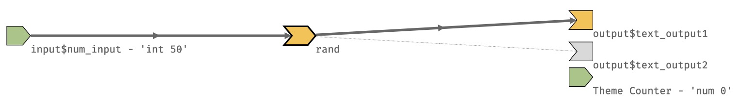 bindEvent()Bind an action to a specific event. Similar to observeEvent(), but allows for the event to be determined dynamically. Links an input (like a button) to an output and ensures that reactive expressions are only updated when bound event is triggered.