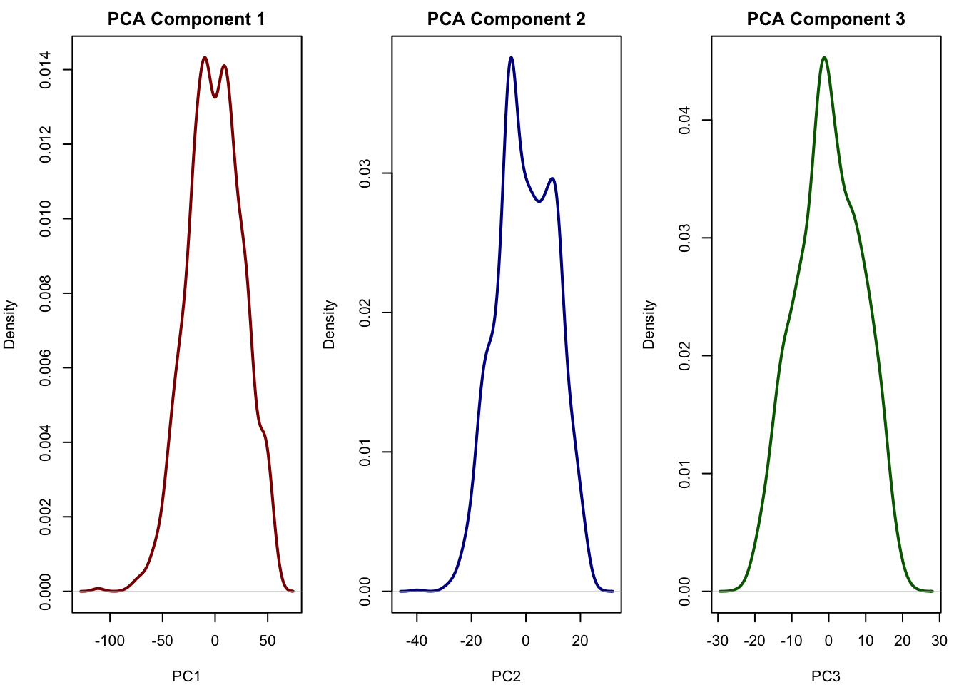 plot(density(ica_scores[,3]), main = "ICA Component 3", xlab = "PC3", col = "darkgreen", lwd = 2)