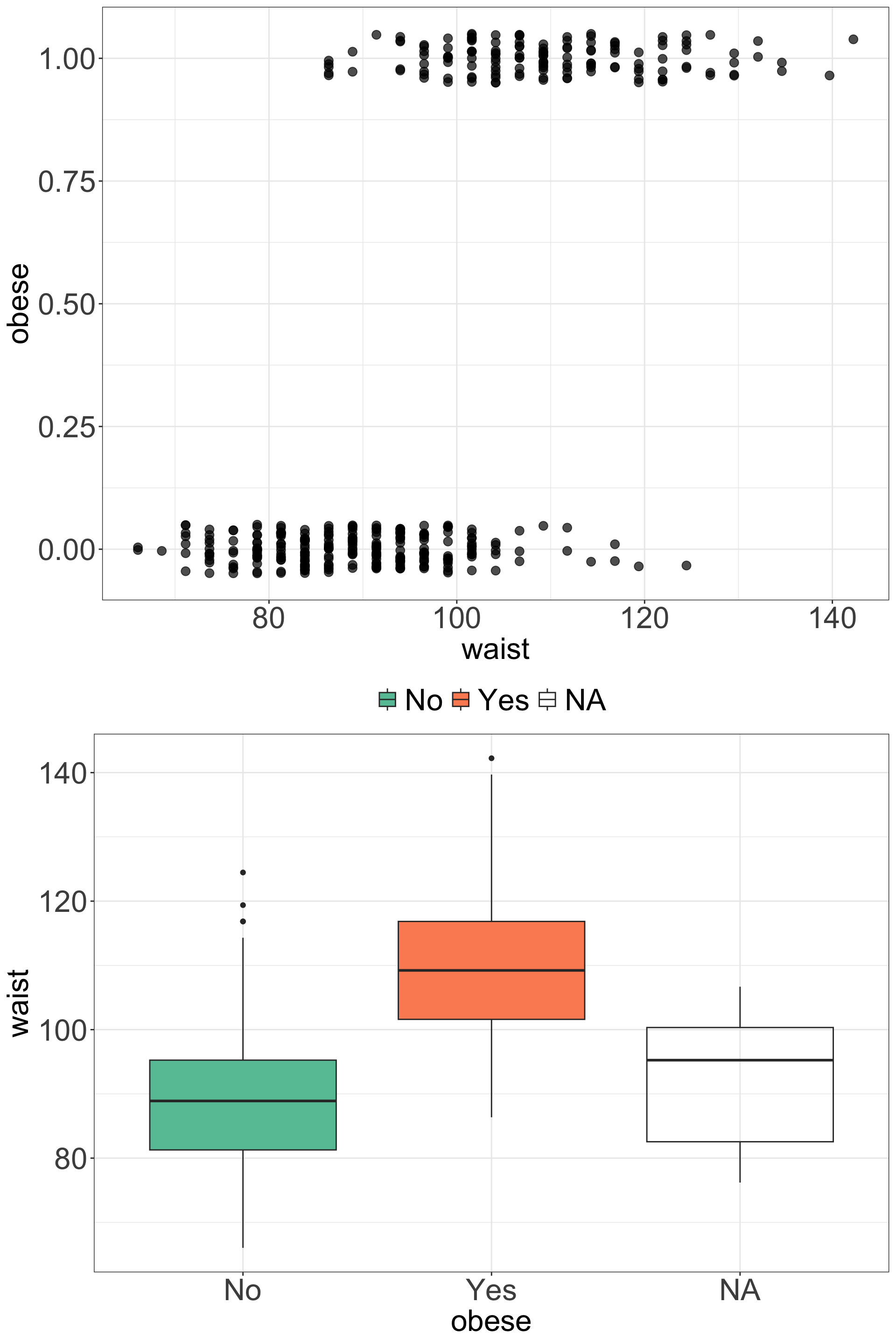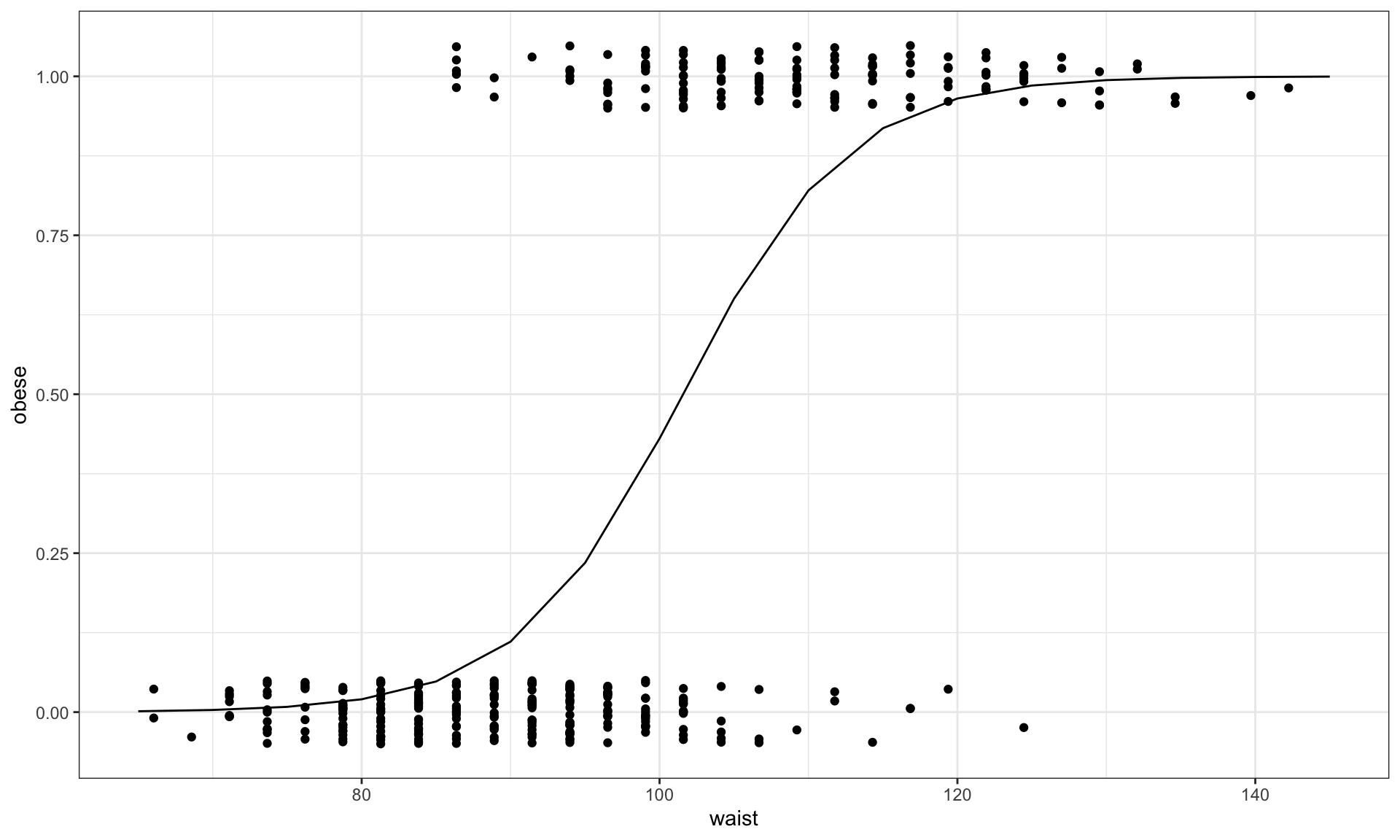 ## glm(formula = obese ~ waist, family = binomial(link = "logit"),