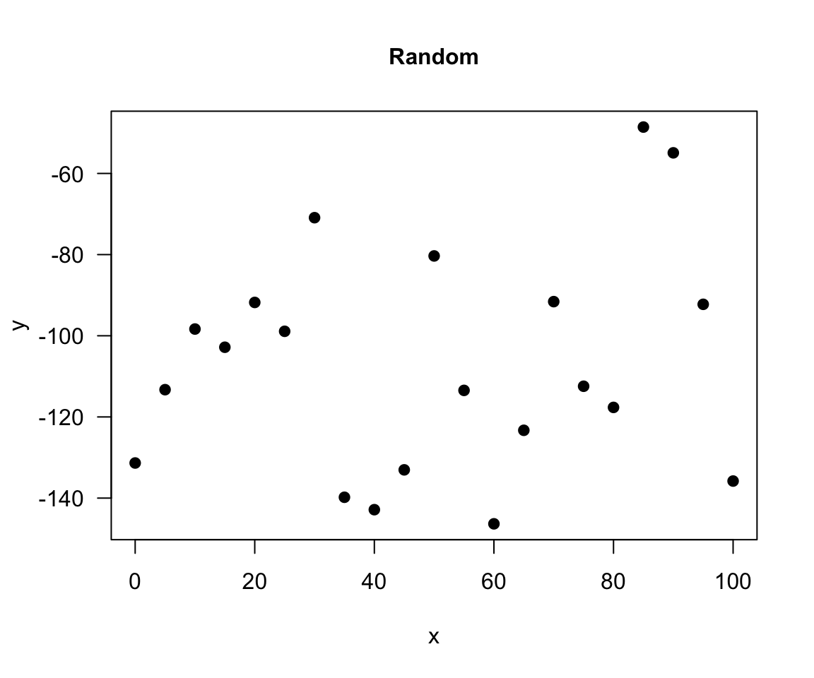 There is no relationship between variables in the random relationship, e.g. number of plants Olga buys and time of the year as Olga buys plants whenever she feels like it throughout the entire year