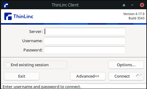 There is a ThinLinc server running at one of the login nodes which allows users to run a remote desktop. It can be reached using the ThinLink client, following these steps: