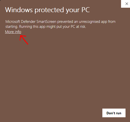 More infolink you will get an option to run it anyway.Go through the installer steps.
