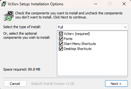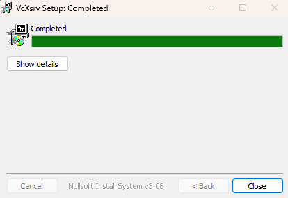 These steps you only have to follow once, and after that the VcXsrv will be installed and you will only have to do the steps in the Running section to use it.