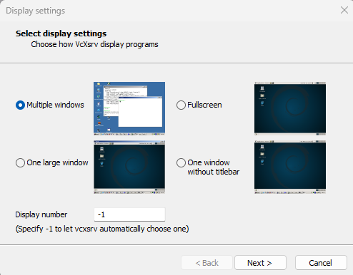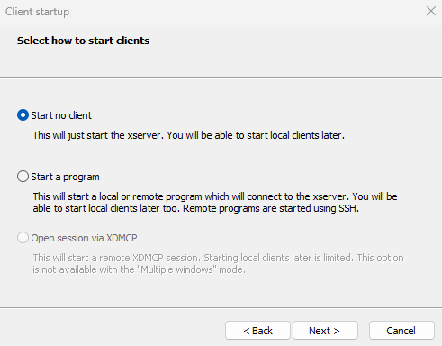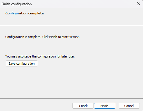 Once it is installed you can start VcXsrv using the desktop shortcut that was created. Now the program is installed and you will never do the steps above again. If you exit VcXsrv or reboot your computer, you will have to follow the steps below to start it again.