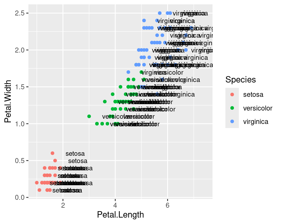 geom_label(aes(label=Species,hjust=0),nudge_x=0.5,size=3)