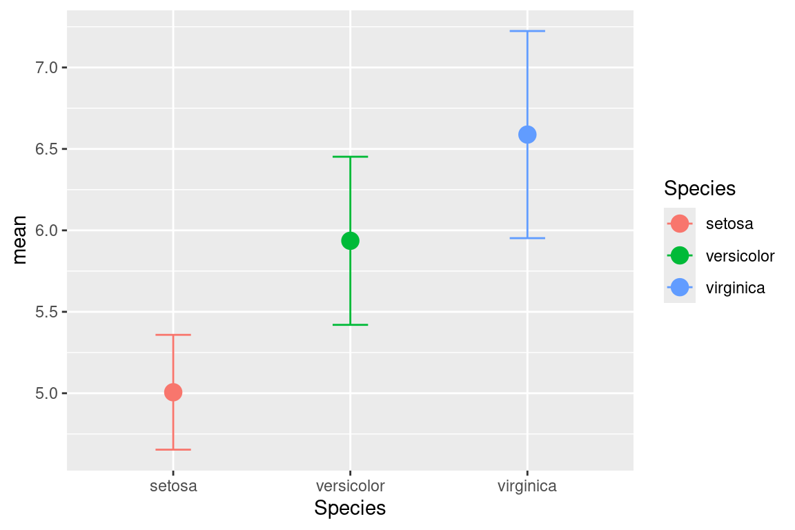 ggplot(data=dfr,mapping=aes(x=Species,y=mean,color=Species))+