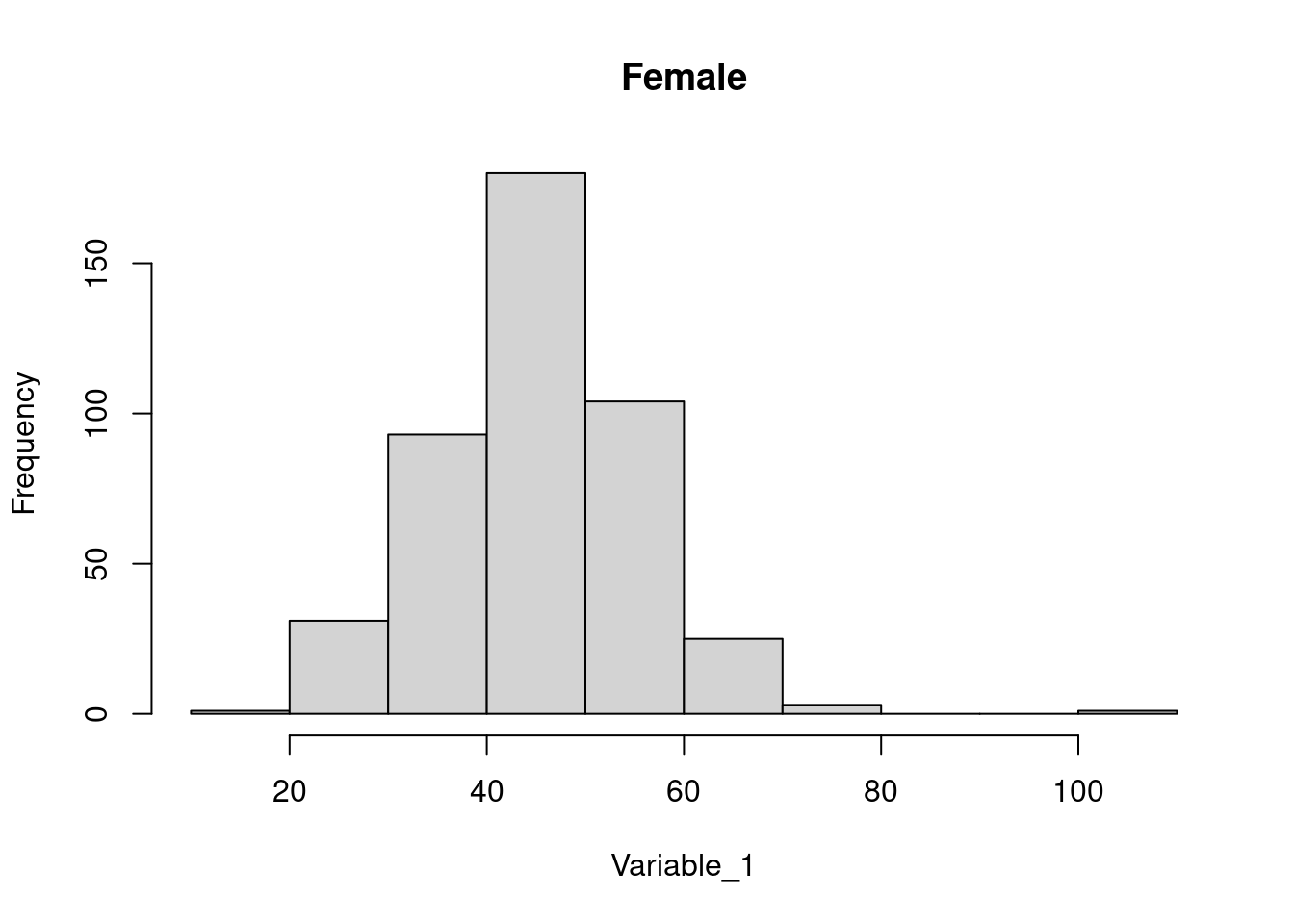 hist(dataset_f$Variable_1, main = 'Female', xlab = 'Variable_1')