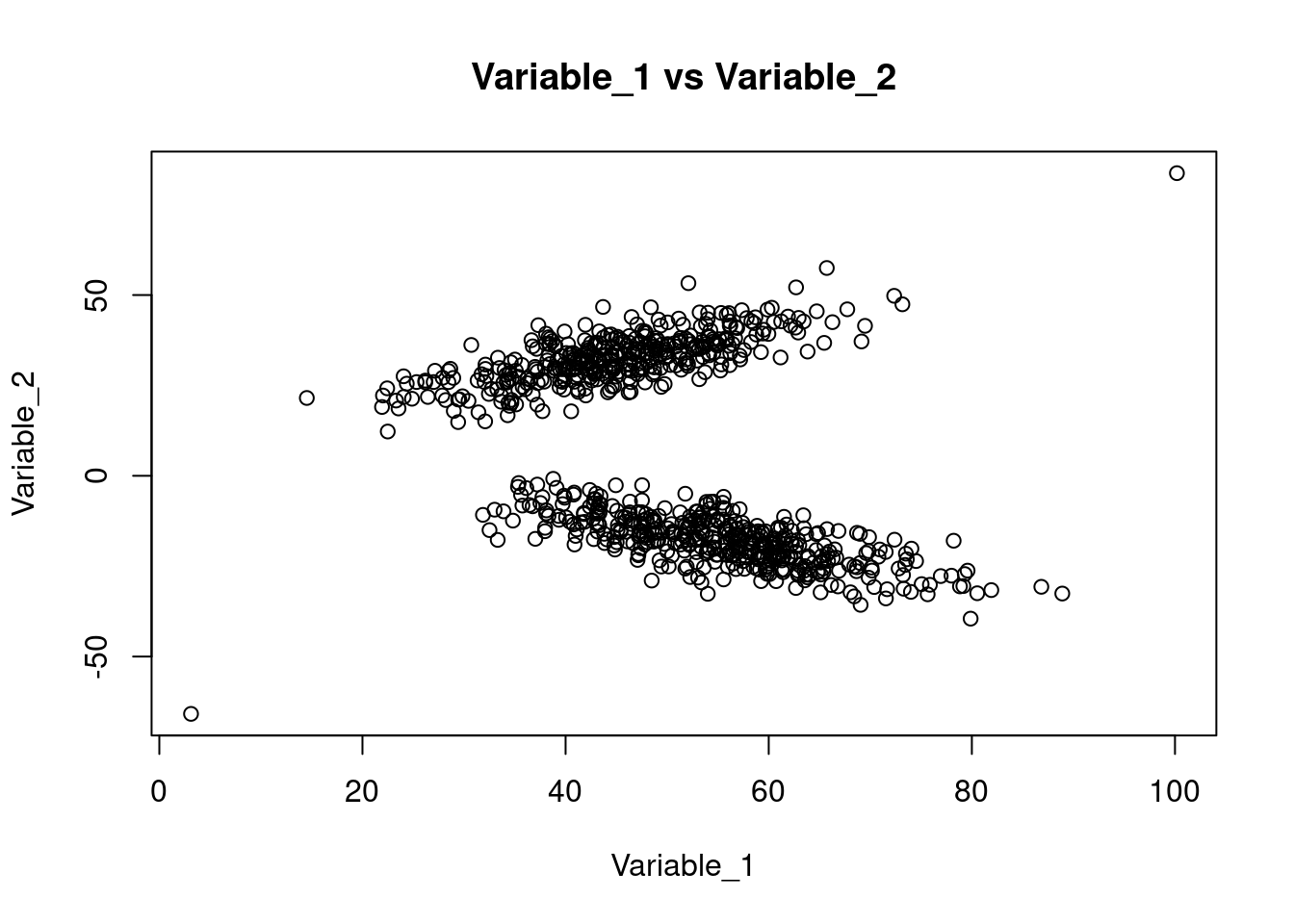 plot(dataset$Variable_1, dataset$Variable_2, main = 'Variable_1 vs Variable_2', xlab = 'Variable_1', ylab = 'Variable_2')
