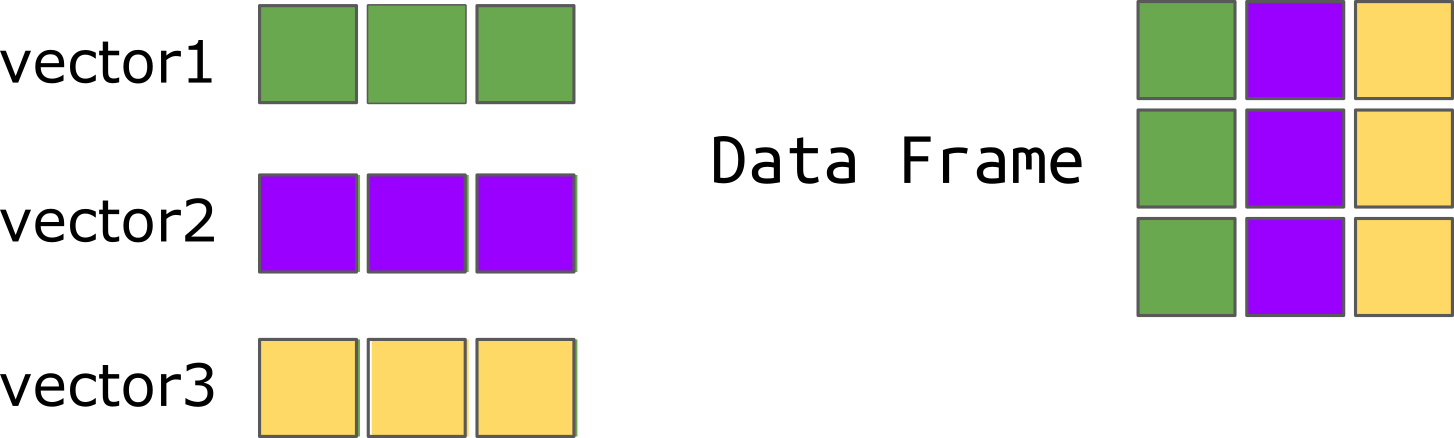 class: center, middle, inverse, title-slide .title[ # Matrices, Data Frames, and Lists ] .subtitle[ ## R Foundations for Data Analysis ] .author[ ### Marcin Kierczak, Guilherme Dias ] --- exclude: true count: false <link href="https://fonts.googleapis.com/css?family=Roboto|Source+Sans+Pro:300,400,600|Ubuntu+Mono&subset=latin-ext" rel="stylesheet"> <link rel="stylesheet" href="https://use.fontawesome.com/releases/v5.3.1/css/all.css" integrity="sha384-mzrmE5qonljUremFsqc01SB46JvROS7bZs3IO2EmfFsd15uHvIt+Y8vEf7N7fWAU" crossorigin="anonymous"> --- name: contents # Contents of the lecture - variables and their types - operators - vectors - numbers as vectors - strings as vectors - **matrices** - **data frames** - **lists** <!-- - **objects** --> - repeating actions: iteration and recursion - decision taking: control structures - functions in general - variable scope - core functions --- name: matrices # Matrices A **matrix** is a 2-dimensional data structure. Like vectors, it consists of elements of the same type. A matrix has *rows* and *columns*. Say, we want to construct this matrix in R: `$$\mathbf{X} = \left[\begin{array} {rrr} 1 & 2 & 3 \\ 4 & 5 & 6 \\ 7 & 8 & 9 \end{array}\right]$$` ``` r X <- matrix(1:9, # a sequence of numbers to fill in nrow=3, # three rows (alt. ncol=3) byrow=T) # populate matrix by row X ``` ``` ## [,1] [,2] [,3] ## [1,] 1 2 3 ## [2,] 4 5 6 ## [3,] 7 8 9 ``` --- name: matrices_dim # Matrices — dimensions To check the dimensions of a matrix, use `dim()`: ``` r X dim(X) # 3 rows and 3 columns ``` ``` ## [,1] [,2] [,3] ## [1,] 1 2 3 ## [2,] 4 5 6 ## [3,] 7 8 9 ## [1] 3 3 ``` --- name: matrices_indexing # Matrices — indexing Elements of a matrix are retrieved using the `[]` notation. We have to specify 2 dimensions -- the rows and the columns: `$$\mathbf{X} = \left[\begin{array} {rrr} 1 & 2 & 3 \\ 4 & 5 & 6 \\ 7 & 8 & 9 \end{array}\right]$$` ``` r X[1,2] # Retrieve element from the 1st row, 2nd column X[3,] # Retrieve the entire 3rd row X[,2] # Retrieve the 2nd column ``` ``` ## [1] 2 ## [1] 7 8 9 ## [1] 2 5 8 ``` --- name: matrices_indexing_2 exclude: true # Matrices — indexing cted. `$$\mathbf{X} = \left[\begin{array} {rrr} 1 & 2 & 3 \\ 4 & 5 & 6 \\ 7 & 8 & 9 \end{array}\right]$$` ``` r X[c(1,3),] # Retrieve rows 1 and 3 X[c(1,3),c(3,1)] ``` ``` ## [,1] [,2] [,3] ## [1,] 1 2 3 ## [2,] 7 8 9 ## [,1] [,2] ## [1,] 3 1 ## [2,] 9 7 ``` --- name: matrices_oper_1 # Matrices — operations Usually the functions that work for a vector also work for matrices. To order a matrix with respect to, say, 2nd column: ``` r X <- matrix(sample(1:9,size = 9), nrow = 3) ord <- order(X[,2]) X[ord,] ``` ``` ## [,1] [,2] [,3] ## [1,] 8 3 7 ## [2,] 1 4 2 ## [3,] 6 9 5 ``` --- name: matrices_t # Matrices — transposition To **transpose** a matrix use `t()`: ``` r X t(X) ``` ``` ## [,1] [,2] [,3] ## [1,] 1 4 2 ## [2,] 8 3 7 ## [3,] 6 9 5 ## [,1] [,2] [,3] ## [1,] 1 8 6 ## [2,] 4 3 9 ## [3,] 2 7 5 ``` --- name: matrices_oper_2 exclude: true # Matrices — operations 2 To get the diagonal of the matrix: ``` r X diag(X) # get values on the diagonal ``` ``` ## [,1] [,2] [,3] ## [1,] 1 4 2 ## [2,] 8 3 7 ## [3,] 6 9 5 ## [1] 1 3 5 ``` --- name: matrices_tri exclude: true # Matrices — operations, triangles To get the upper or the lower triangle use `upper.tri()` and `lower.tri()` respectively: ``` r X # print X upper.tri(X) # which elements form the upper triangle X[upper.tri(X)] <- 0 # set them to 0 X # print the new matrix ``` ``` ## [,1] [,2] [,3] ## [1,] 1 4 2 ## [2,] 8 3 7 ## [3,] 6 9 5 ## [,1] [,2] [,3] ## [1,] FALSE TRUE TRUE ## [2,] FALSE FALSE TRUE ## [3,] FALSE FALSE FALSE ## [,1] [,2] [,3] ## [1,] 1 0 0 ## [2,] 8 3 0 ## [3,] 6 9 5 ``` --- name: matrices_multi # Matrices — multiplication Different types of matrix multiplication exist: ``` r A <- matrix(1:4, nrow = 2, byrow=T) B <- matrix(5:8, nrow = 2, byrow=T) A * B # Hadamard product A %*% B # Matrix multiplication # A %x% B # Kronecker product # A %o% B # Outer product (tensor product) ``` ``` ## [,1] [,2] ## [1,] 5 12 ## [2,] 21 32 ## [,1] [,2] ## [1,] 19 22 ## [2,] 43 50 ``` --- name: matrices_outer exclude: true # Matrices — outer Outer product can be useful for generating names ``` r outer(letters[1:4], LETTERS[1:4], paste, sep="-") ``` ``` ## [,1] [,2] [,3] [,4] ## [1,] "a-A" "a-B" "a-C" "a-D" ## [2,] "b-A" "b-B" "b-C" "b-D" ## [3,] "c-A" "c-B" "c-C" "c-D" ## [4,] "d-A" "d-B" "d-C" "d-D" ``` --- name: matrices_expand_grid exclude: true # Expand grid But `expand.grid()` is more convenient when you want, e.g. generate combinations of variable values: ``` r expand.grid(height = seq(120, 121), weight = c('1-50', '51+'), sex = c("Male","Female")) ``` ``` ## height weight sex ## 1 120 1-50 Male ## 2 121 1-50 Male ## 3 120 51+ Male ## 4 121 51+ Male ## 5 120 1-50 Female ## 6 121 1-50 Female ## 7 120 51+ Female ## 8 121 51+ Female ``` --- name: matrices_apply # Matrices — apply Function `apply` is a very useful function that applies a given function to either each value of the matrix or in a column/row-wise manner. Say, we want to have mean of values by column: ``` r X apply(X, MARGIN=2, mean) # MARGIN=1 would do it for rows ``` ``` ## [,1] [,2] [,3] ## [1,] 1 0 0 ## [2,] 8 3 0 ## [3,] 6 9 5 ## [1] 5.000000 4.000000 1.666667 ``` --- name: matrices_apply_2 exclude: true # Matrices — apply cted. And now we will use `apply()` to calculate for each element in a matrix its deviation from the mean squared: ``` r X my.mean <- mean(X) apply(X, MARGIN=c(1,2), function(x, my.mean) (x - my.mean)^2, my.mean) ``` ``` ## [,1] [,2] [,3] ## [1,] 1 0 0 ## [2,] 8 3 0 ## [3,] 6 9 5 ## [,1] [,2] [,3] ## [1,] 6.530864 12.641975 12.64198 ## [2,] 19.753086 0.308642 12.64198 ## [3,] 5.975309 29.641975 2.08642 ``` --- name: matrices_colSums # Matrices — useful fns. While `apply()` is handy, it is a bit slow and for the most common statistics, there are special functions col/row Sums/Means: ``` r X colMeans(X) ``` ``` ## [,1] [,2] [,3] ## [1,] 1 0