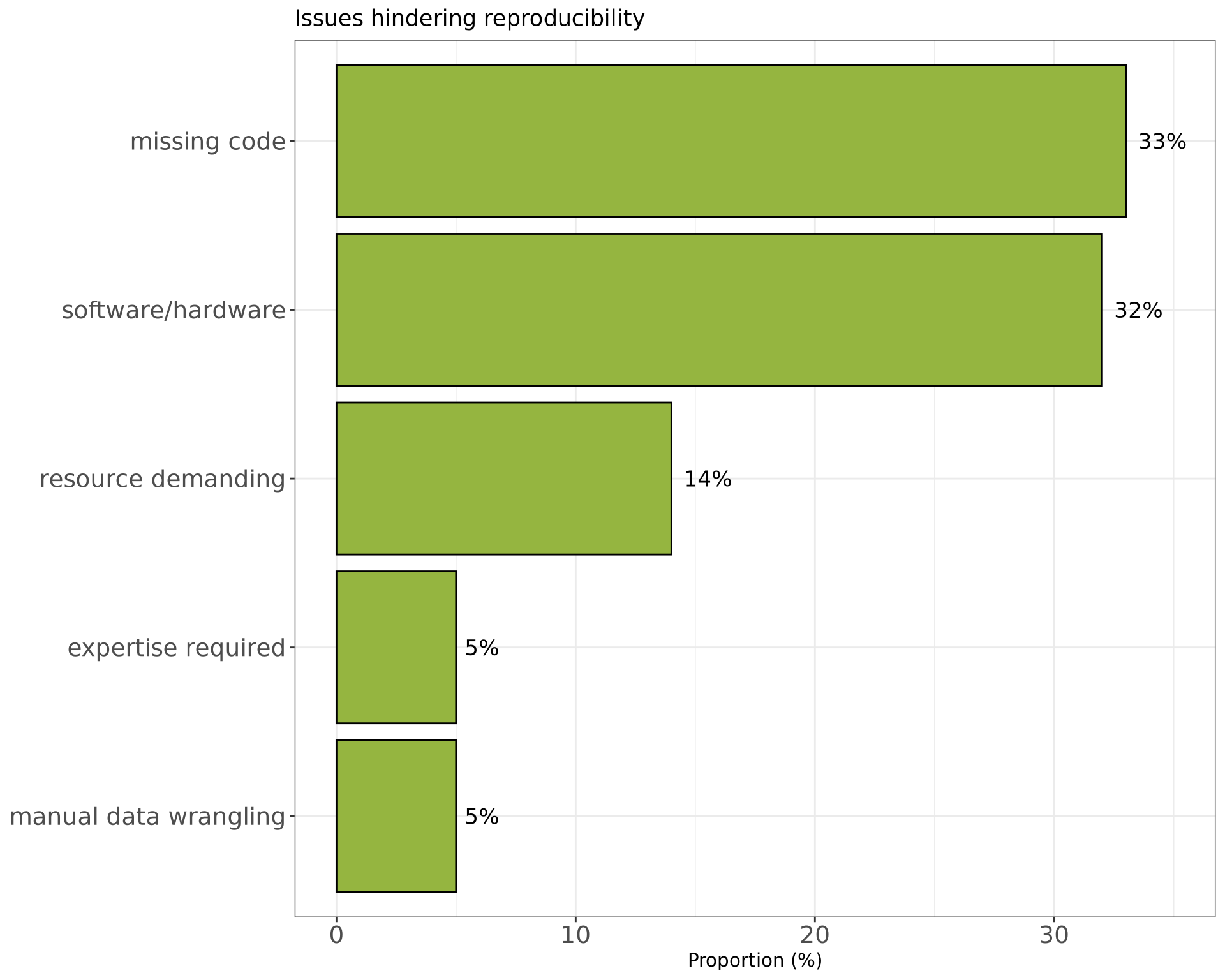 In 2018, Stodden et al estimated the reproducibility rate of computational papers published in the journal Science. 1