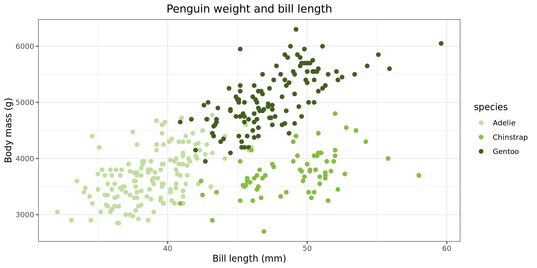 ggtitle("Penguin weight and bill length") +