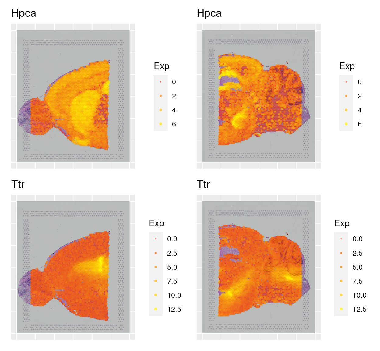 We will use two Visium spatial transcriptomics dataset of the mouse brain (Sagittal), which are publicly available from the 10x genomics website. Note, that these dataset have already been filtered for spots that does not overlap with the tissue.