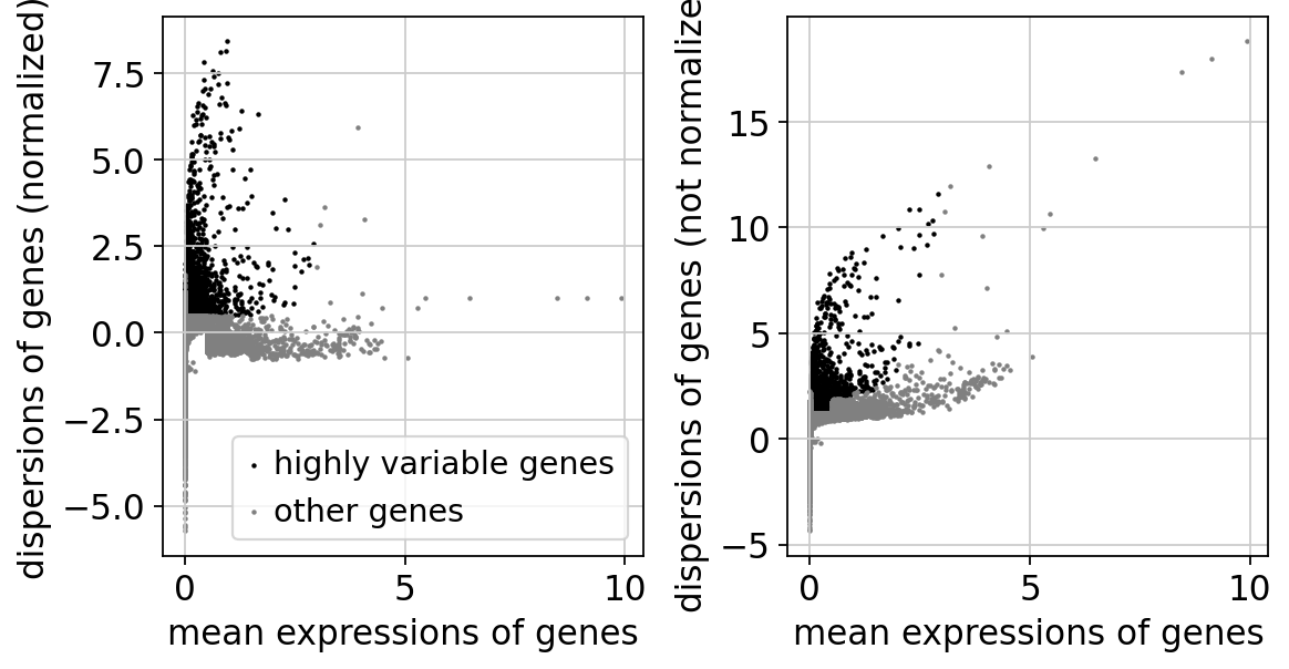 print("Highly variable genes: %d"%sum(var_genes_all))Highly variable genes: 2626