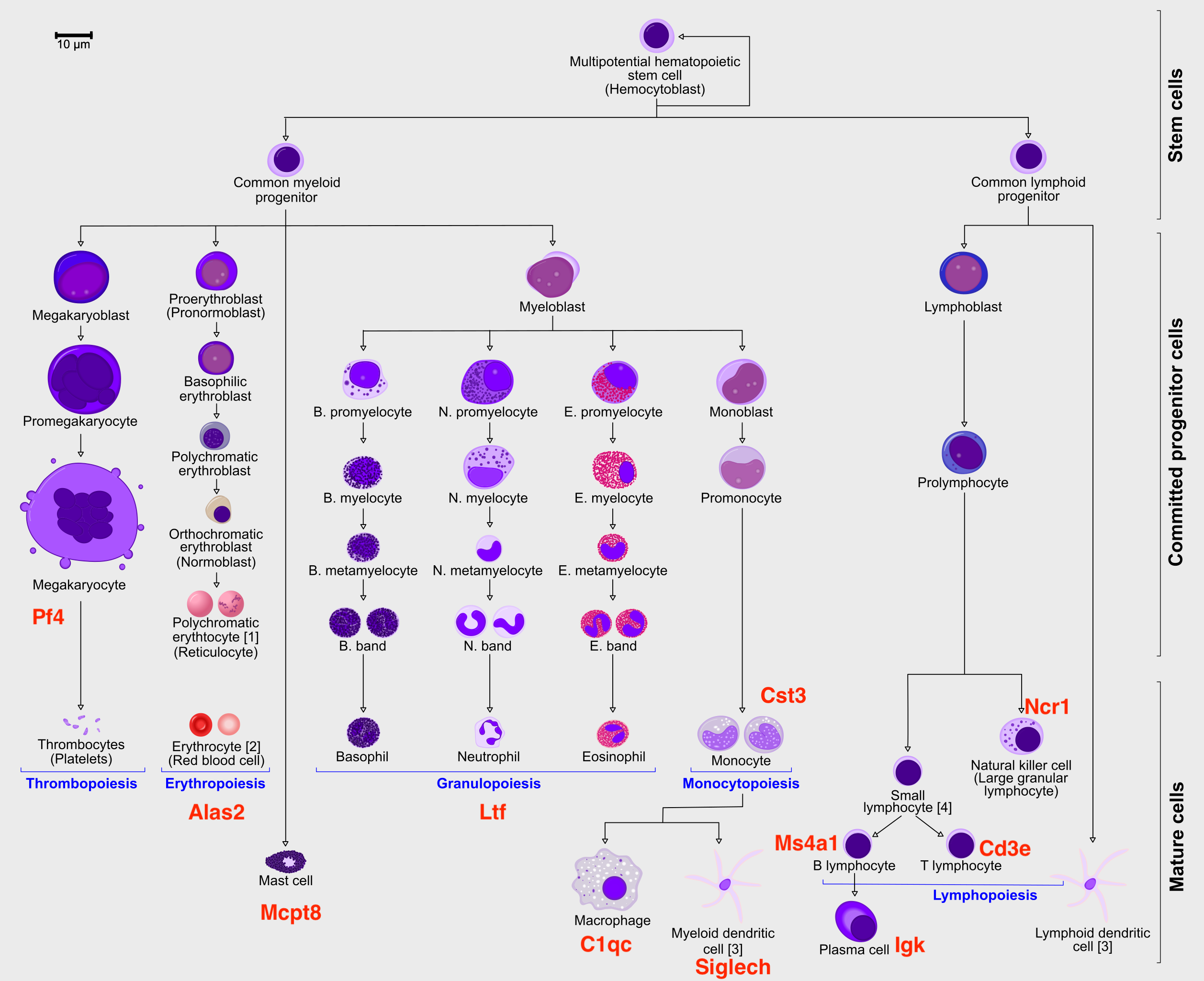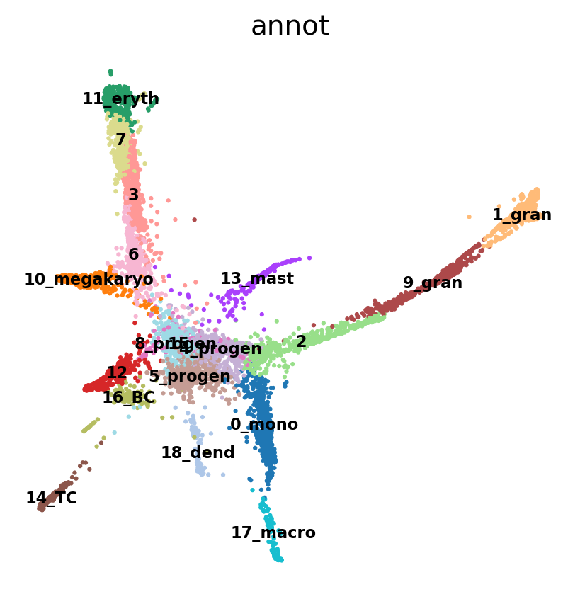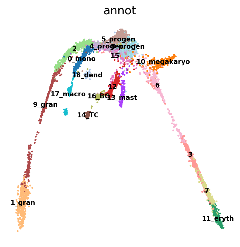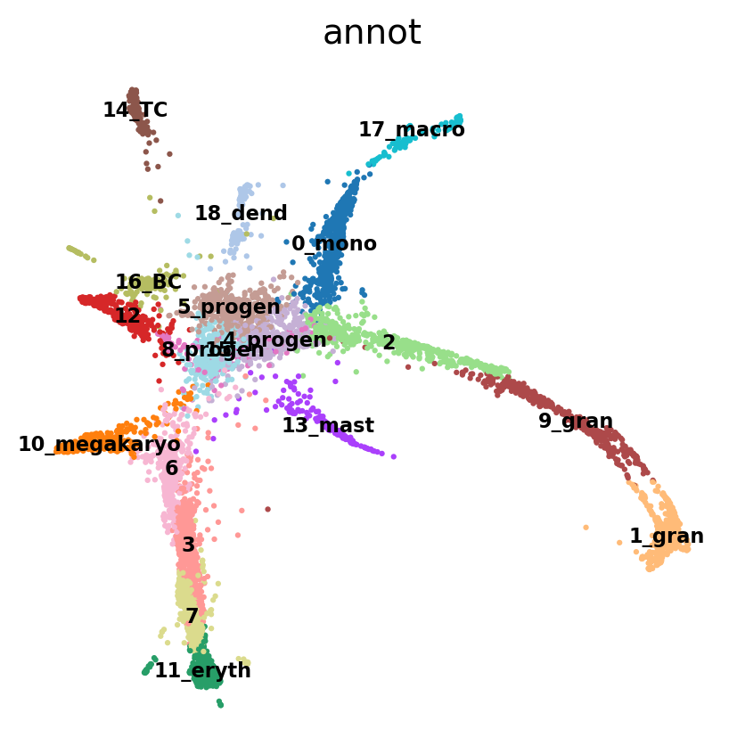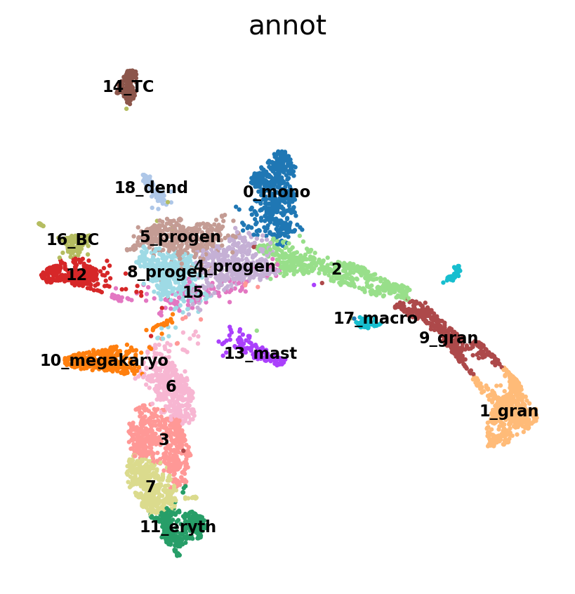 In order to speed up the computations during the exercises, we will be using a subset of a bone marrow dataset (originally containing about 100K cells). The bone marrow is the source of adult immune cells, and contains virtually all differentiation stages of cell from the immune system which later circulate in the blood to all other organs.