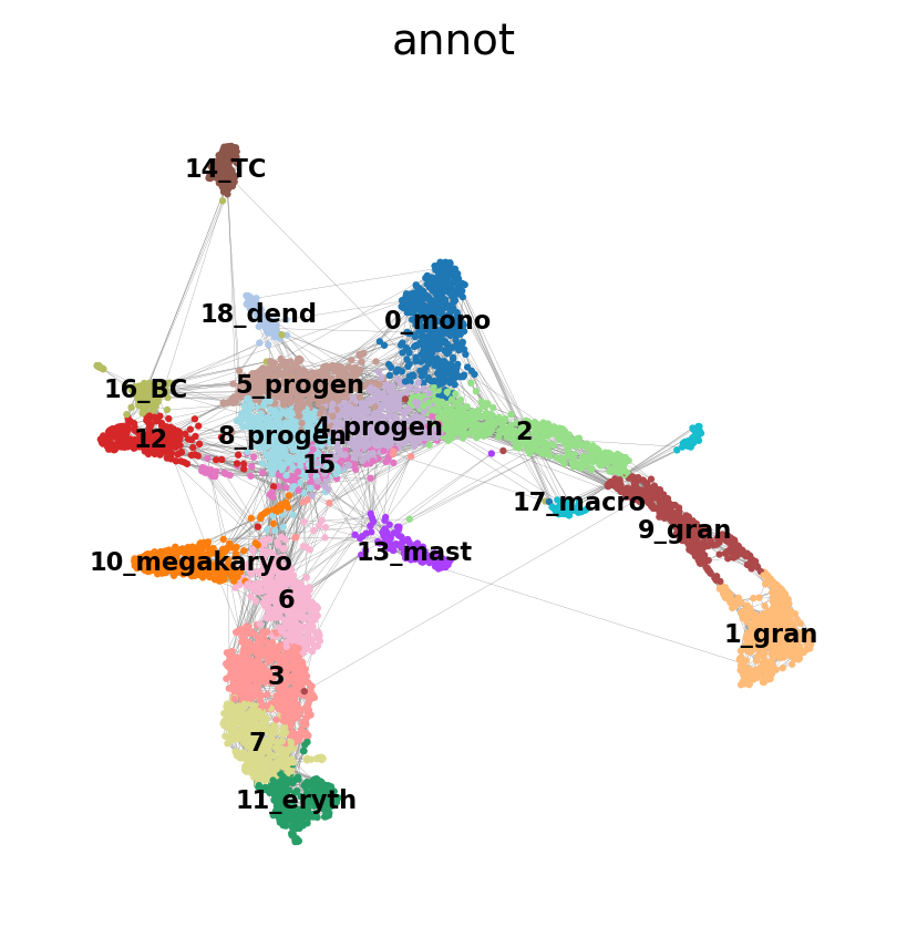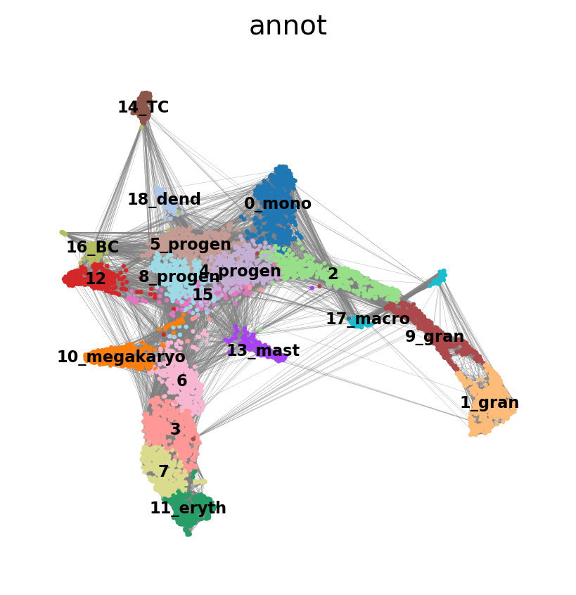 - A KNN/SNN graph (this is useful to inspect and sanity-check your trajectories)