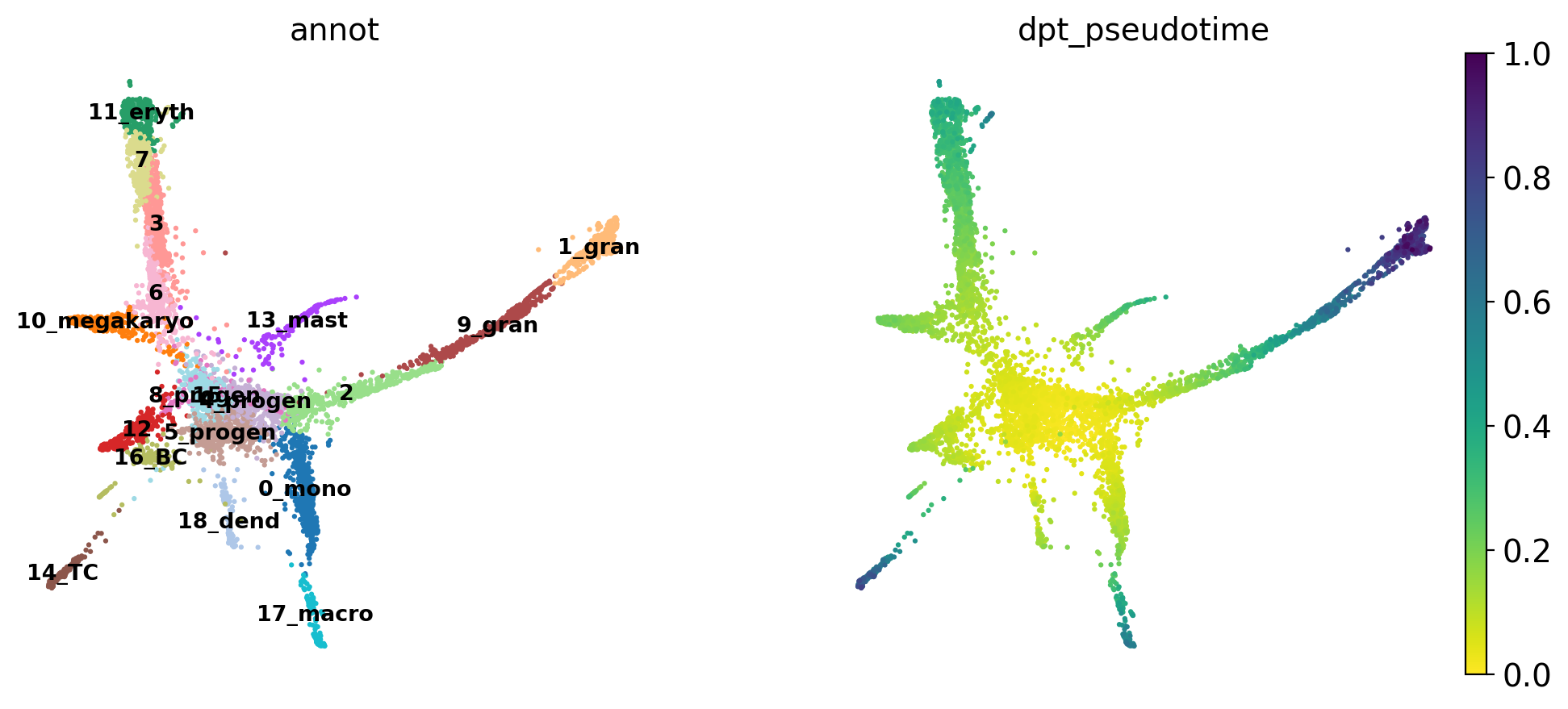 - A dimensionality reduction where to perform the trajectory (for example: PCA, ICA, MNN, harmony, Diffusion Maps, UMAP)