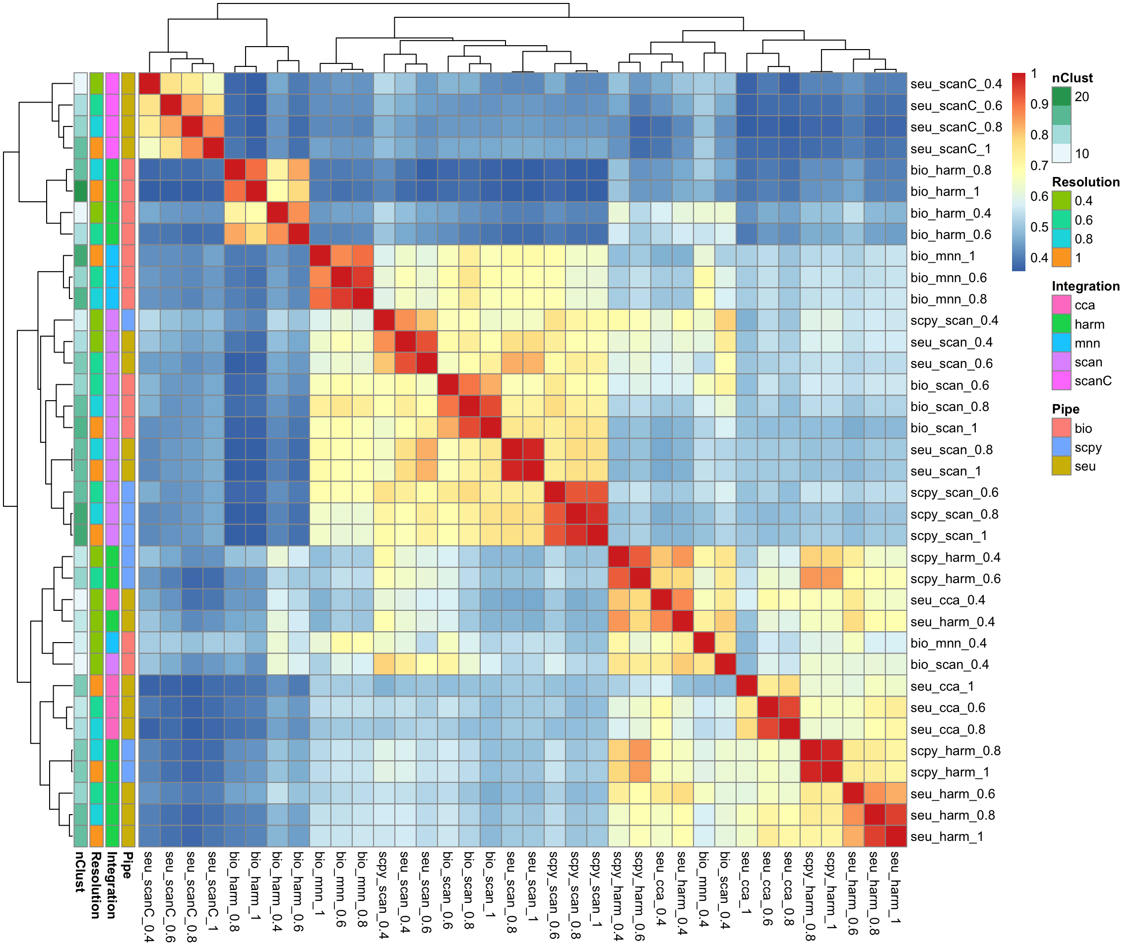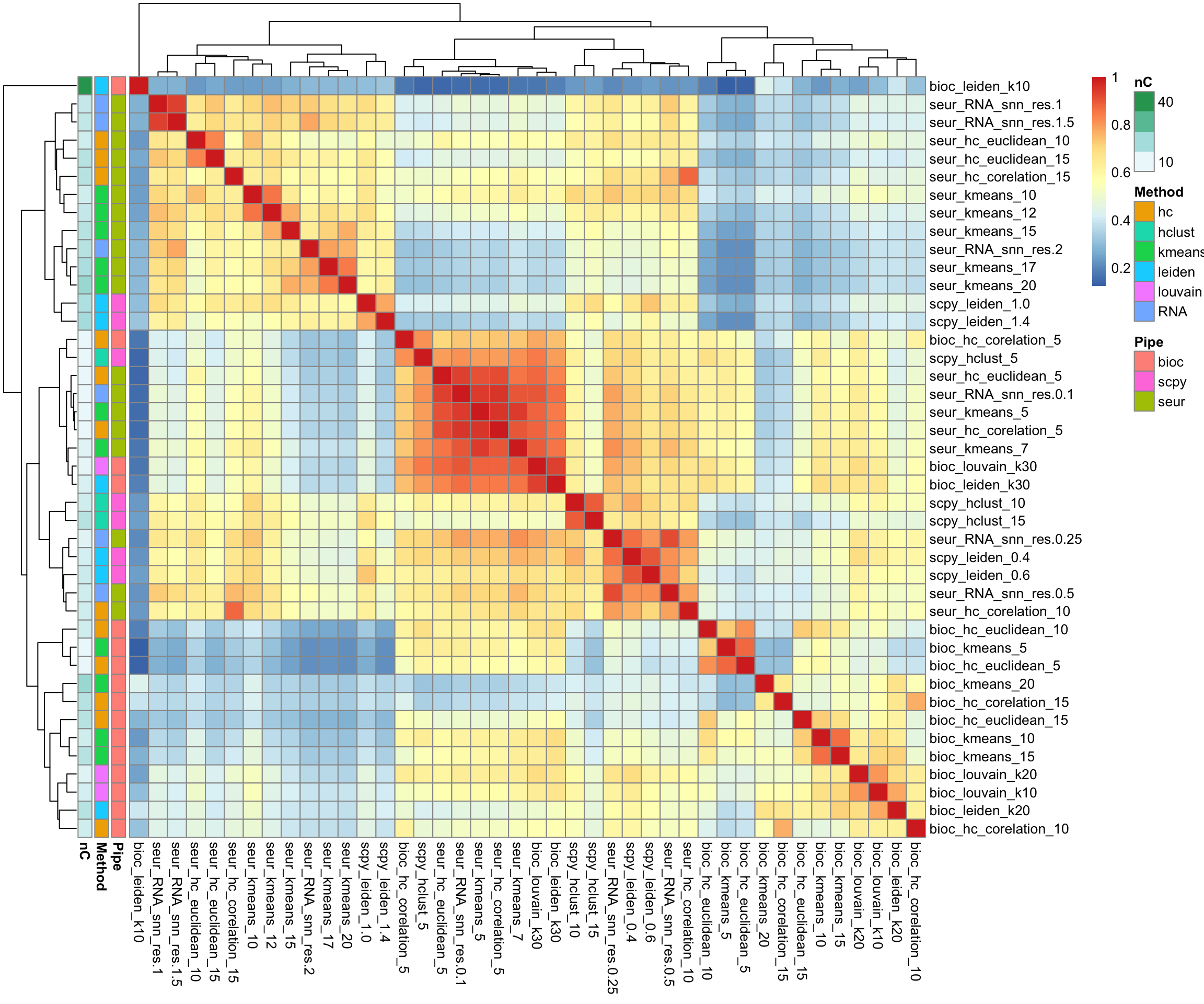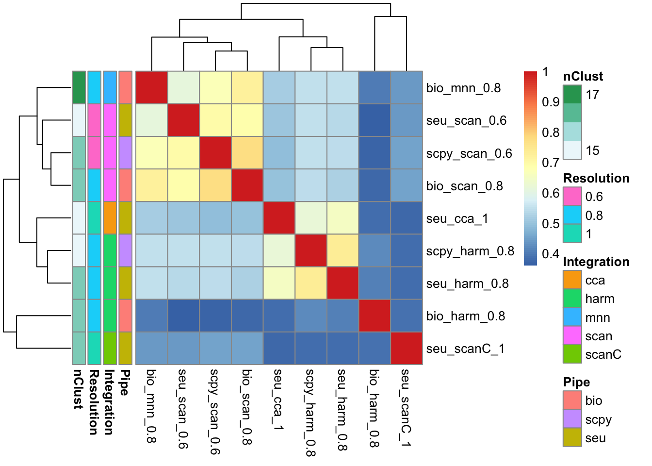 pheatmap::pheatmap(ari)Celltypist and singleR are quite similar.
