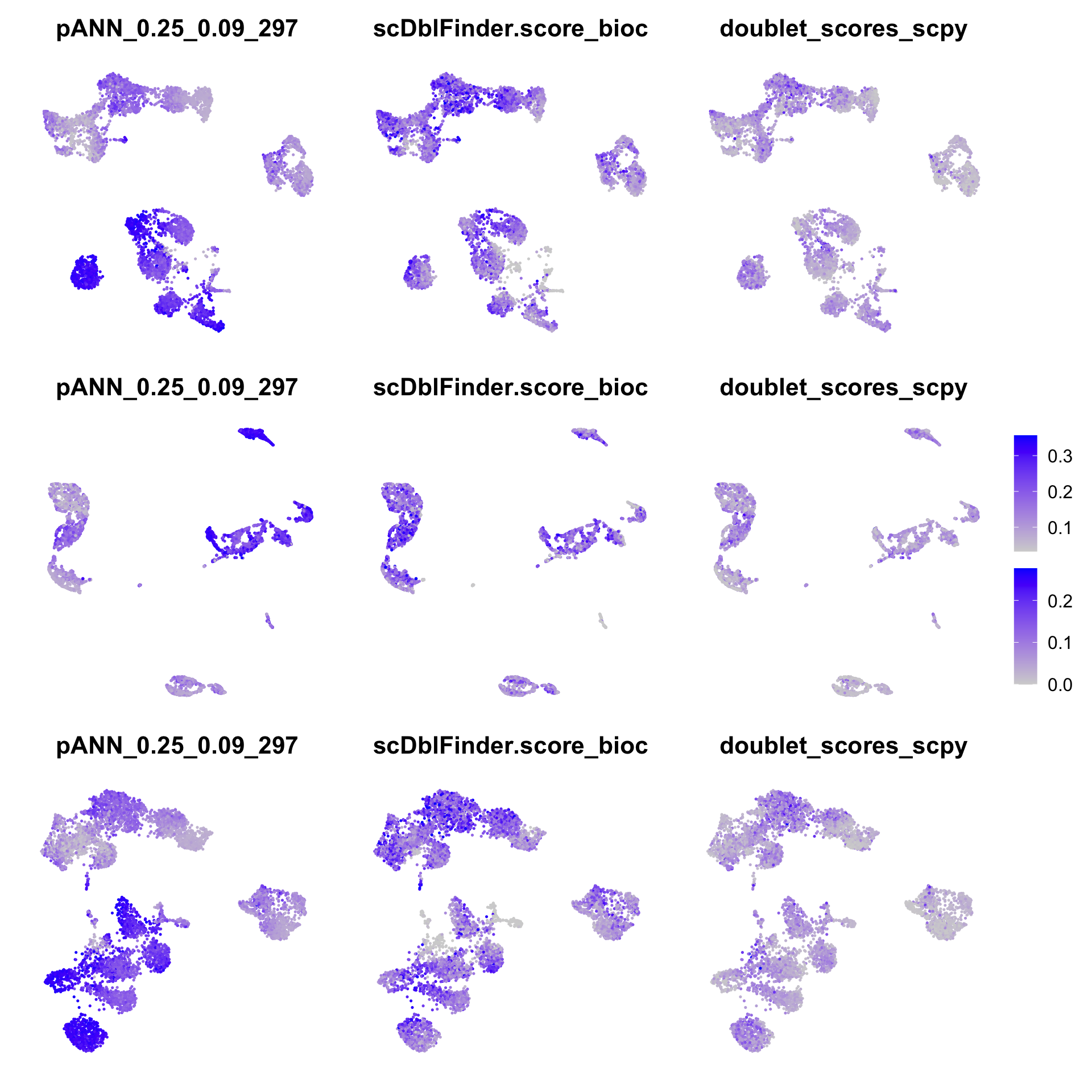 DoubletFinderwith predefined 4% doublets, all samples together. - In Scanpy -