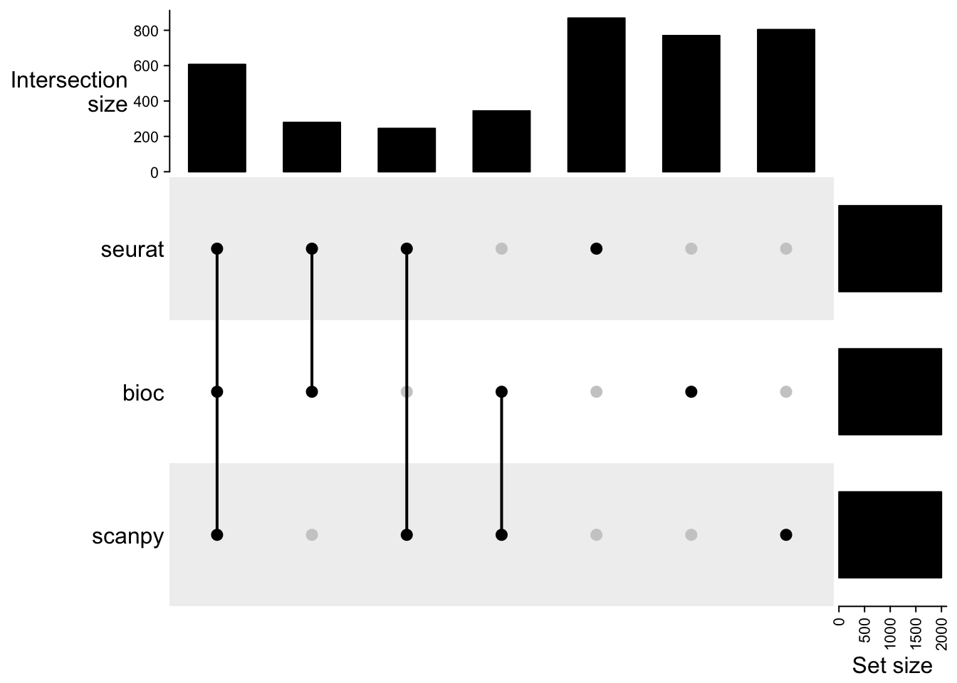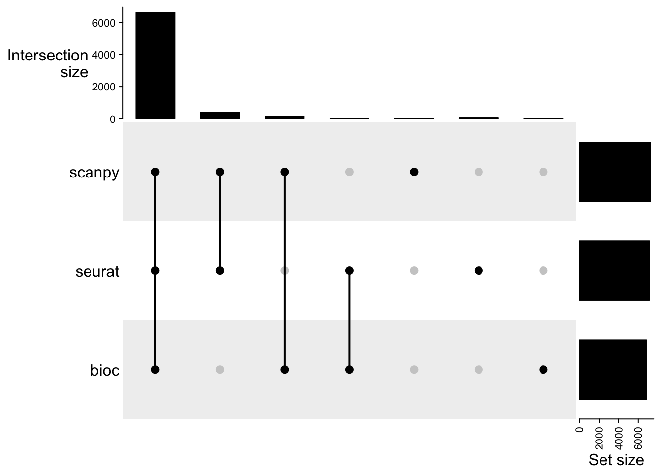 l = list(seurat = meta.seurat$cell, bioc = meta.bioc$cell, scanpy = meta.scanpy$cell)