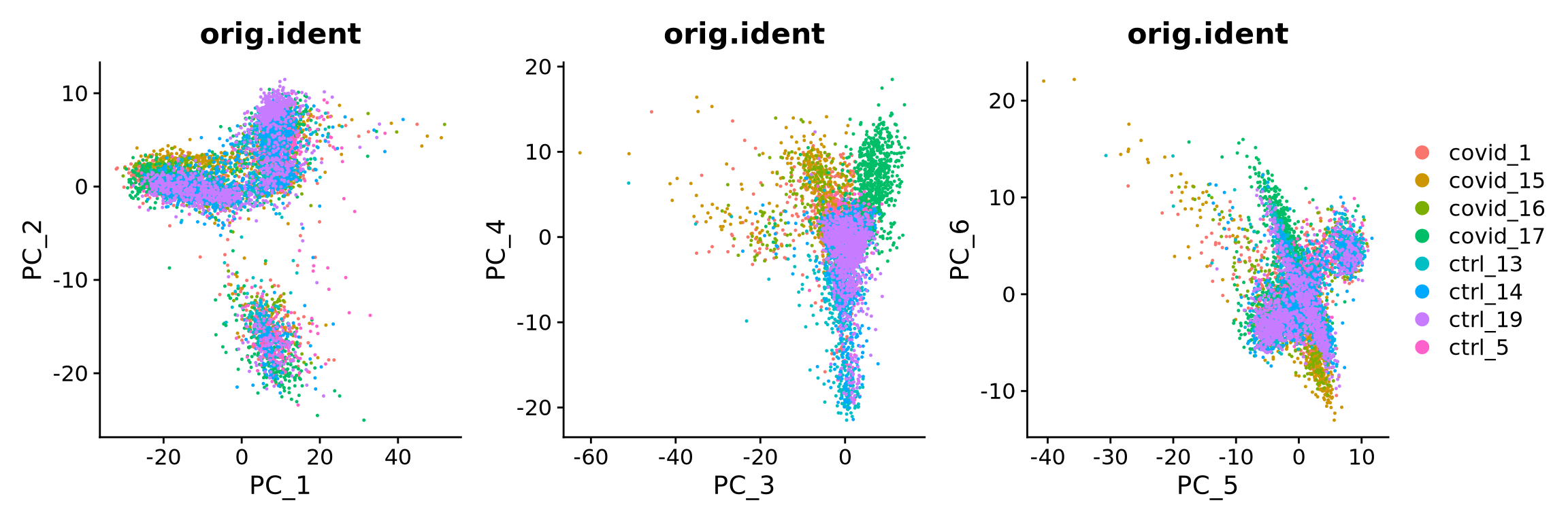 DimPlot(alldata, reduction = "pca", group.by = "orig.ident"),