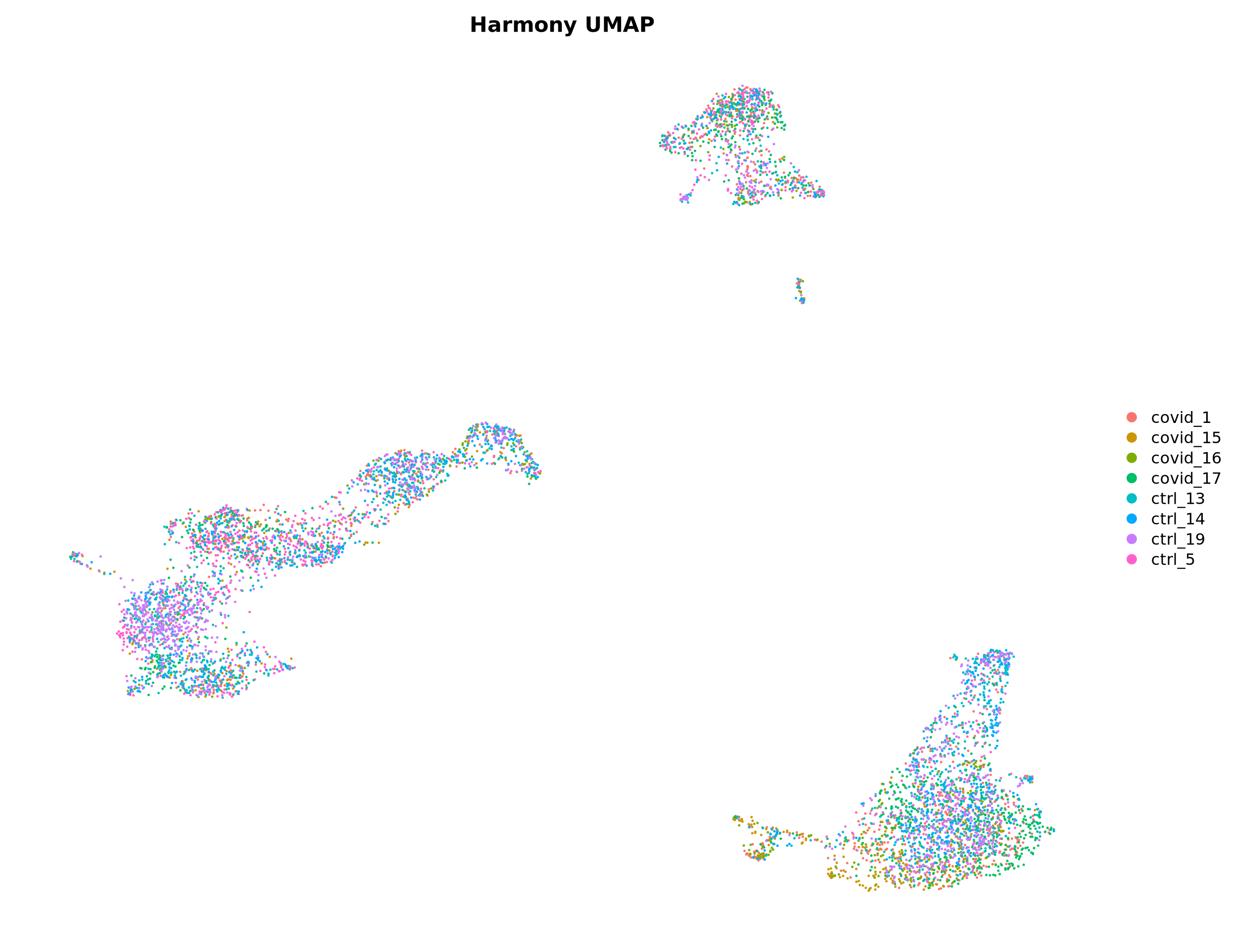 p3 <- DimPlot(alldata, reduction = "umap_harmony", group.by = "orig.ident") + ggtitle("UMAP Harmony")
