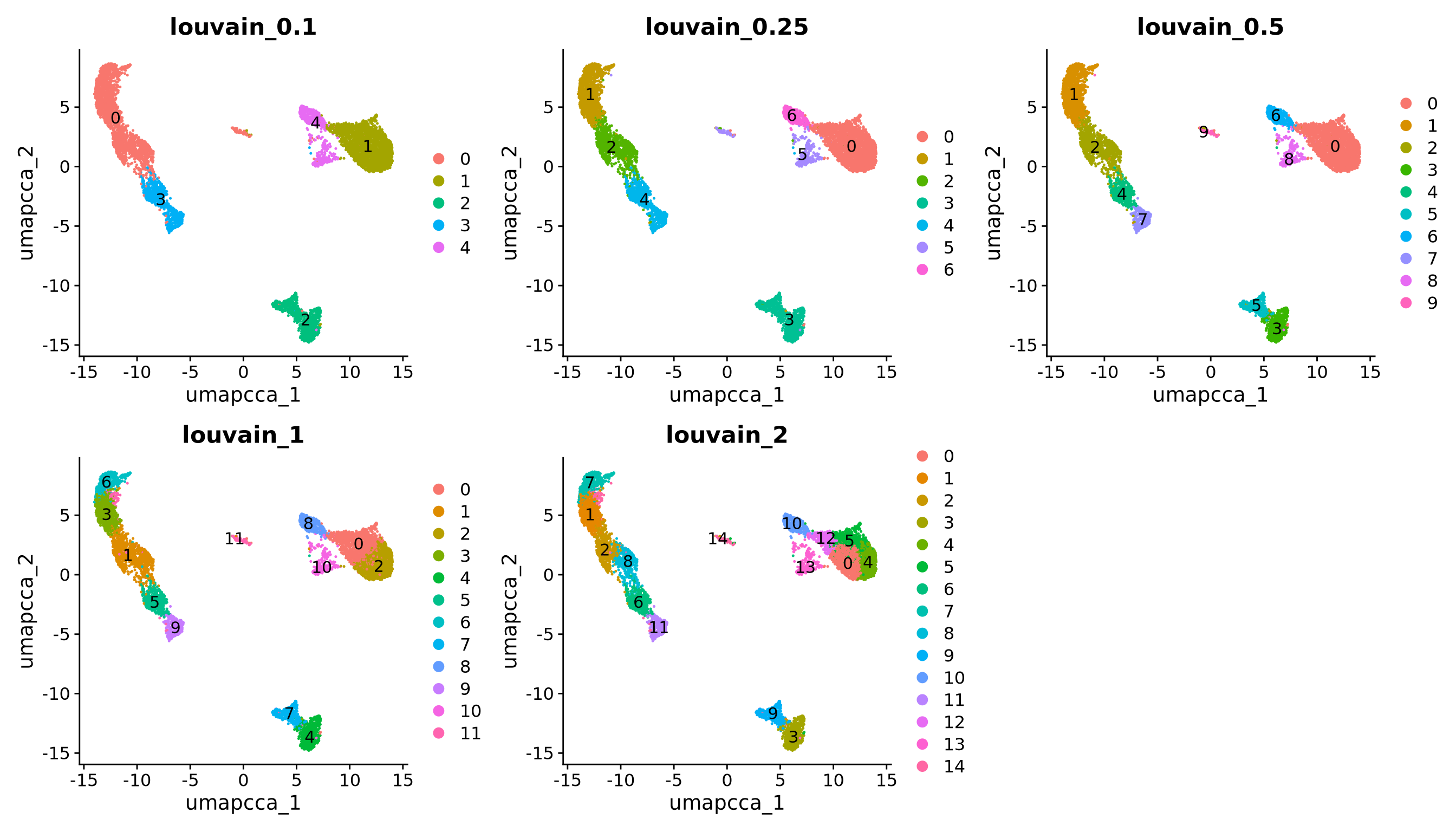 # RNA_snn_res.XX - for each different resolution you test.wrap_plots(