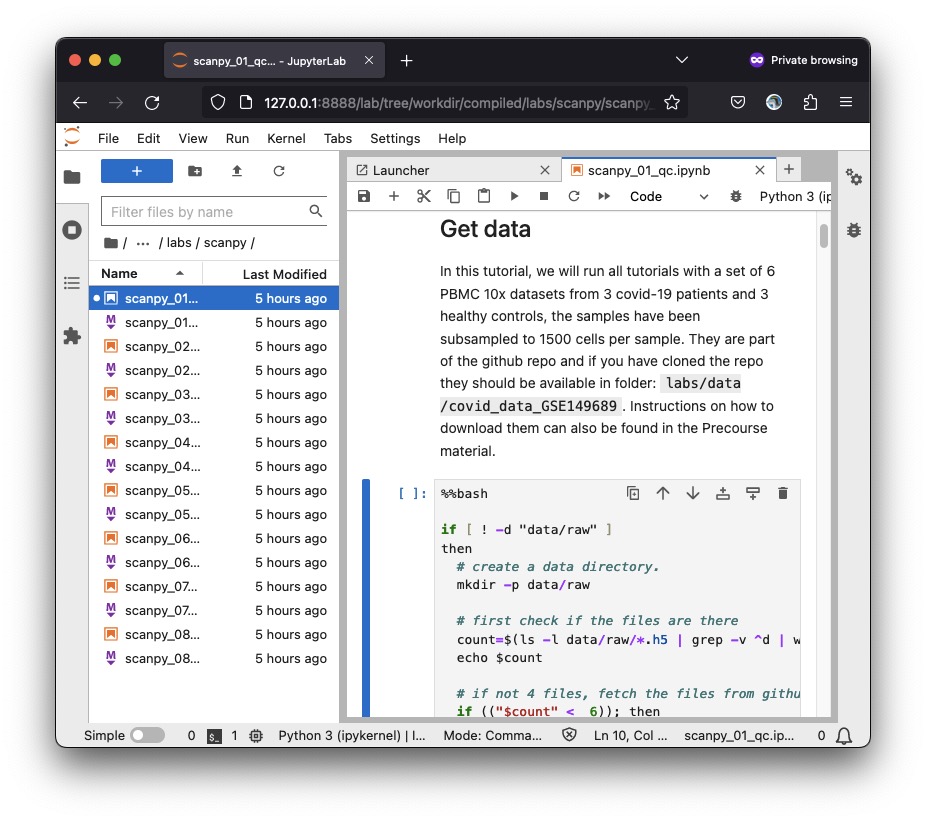 Create a new directory at a suitable location. Now you can fetch the scripts for the labs. You can either download individual .qmd or .ipynb files from the Contents page or clone the whole repo. If you clone the repo, navigate to compiled/labs to work on labs.