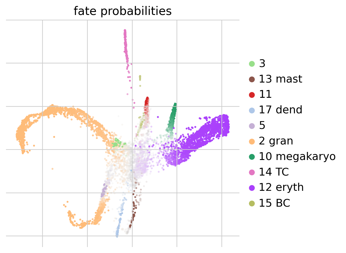 As you can see, we can manipulate the trajectory quite a bit by selecting different number of neighbors, components etc. to fit with our assumptions on the development of these celltypes.