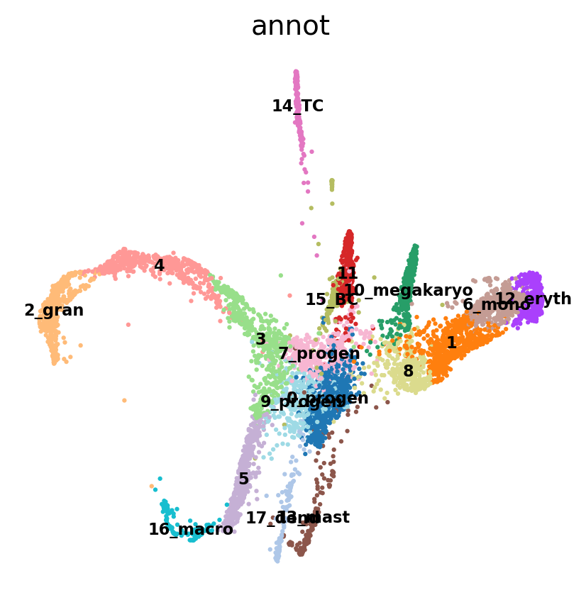 In order to speed up the computations during the exercises, we will be using a subset of a bone marrow dataset (originally containing about 100K cells). The bone marrow is the source of adult immune cells, and contains virtually all differentiation stages of cell from the immune system which later circulate in the blood to all other organs.